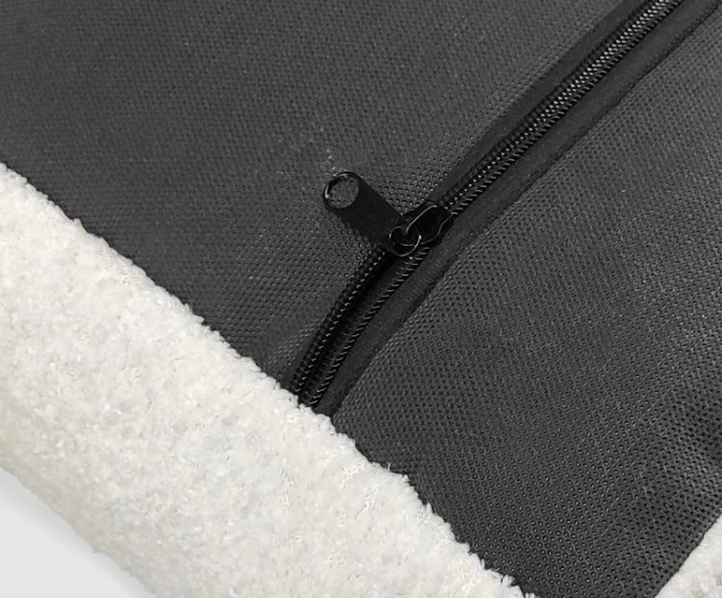 Materialet är av högsta kvalitet, och dessutom avtagbart så du kan tvätta det i tvättmaskinen, precis som du kan med alla bäddar från CAZO. Utöver detta är tyget dessutom veganskt, trots att det känns precis som ull för din hund att gosa in sig i.