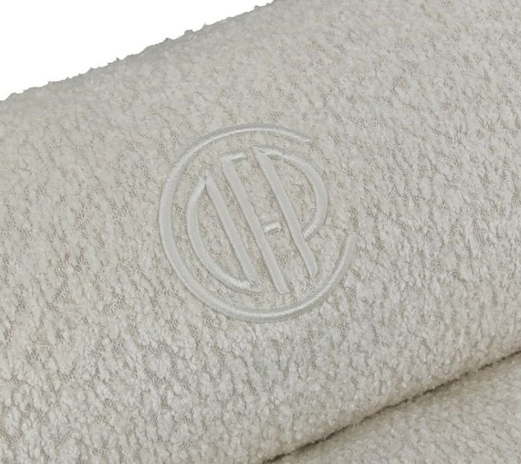 Det dolda fiskbensmönstret i tyget ger en extra lyxig utsida, tillsammans med den eleganta brodyren.