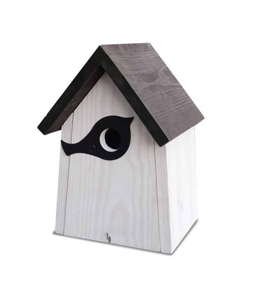 Beskrivning av Fågelholk med hackskydd Vit/Svart