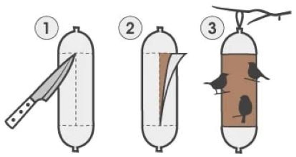 Häng upp din talgfröstång genom att hänga upp snöret som går igenom hela talgfröstången. Skär sedan upp plasten så fåglarna kommer åt talgfröstången och häng upp den utomhus där fåglarna kan äta ifred.