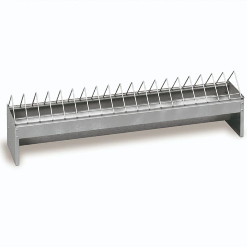 Galvaniserat fodertråg med extra hög kapacitet. Ett mycket robust och slitstarkt alternativ som är särskilt utformat för att passa olika typer av fåglar, såsom höns, duvor, med mera. Tack vare sin starka konstruktion och material av hög kvalitet är det byggt för att tåla daglig användning under lång tid. De rundade kanterna runt hela tråget gör det extra säkert för djuren, samtidigt som de bidrar till att minimera risken för skador och slitage.