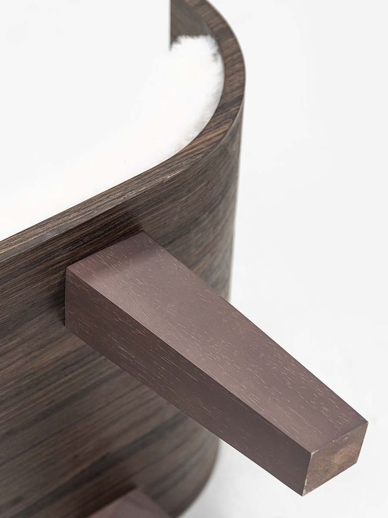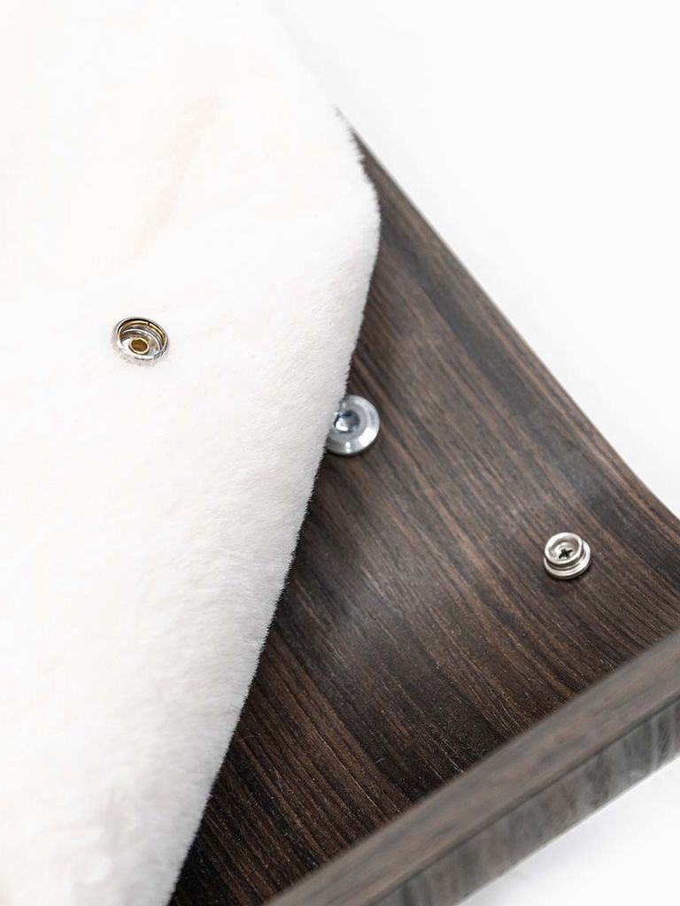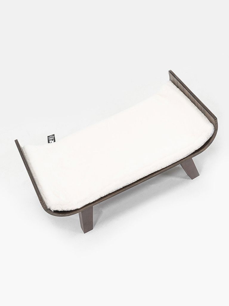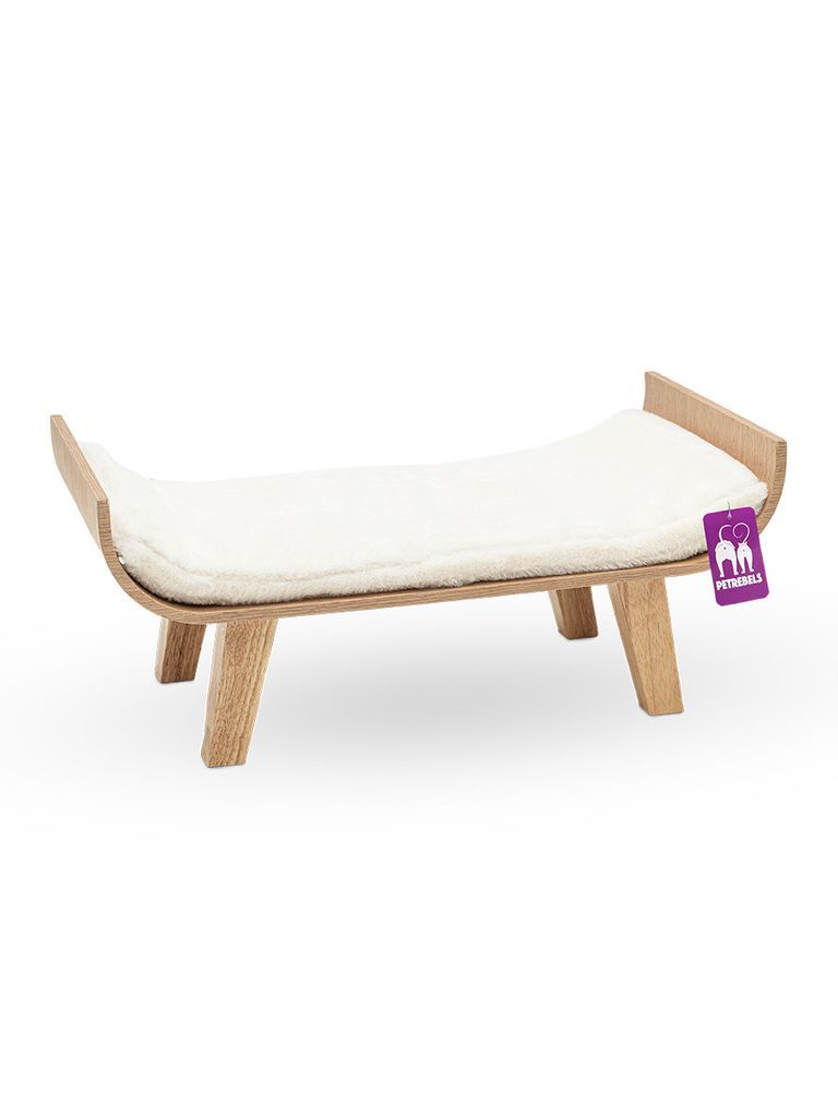 Denna kattbädd är gjord av böjd eukalyptusträ och har en gosig kudde gjord i supermjuk plysch.