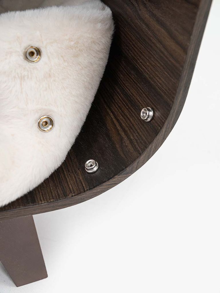 Denna kattbädd är verkligen så mjukt och kommer ge din katt en väldigt god sömn. Den är tillverkad av eukalyptusträ och har en kudde i supermjuk plysch.