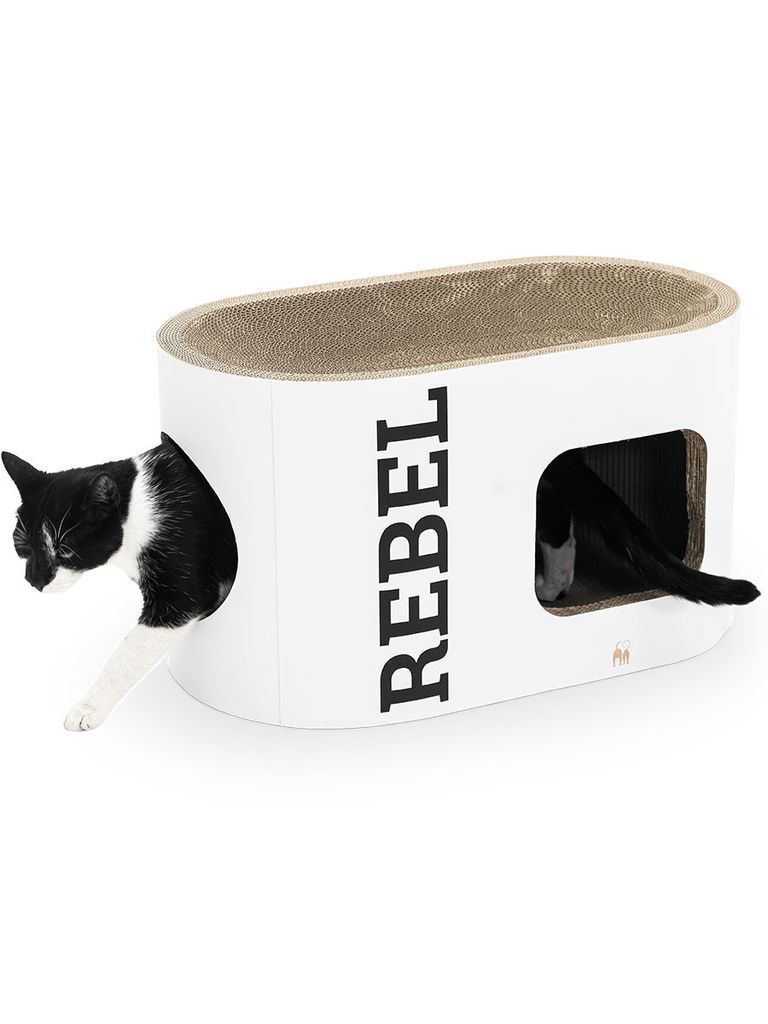 Din katt kan både klösa och roa sig själv, men också vila och gömma sig i den när den vill vara för sig själv.