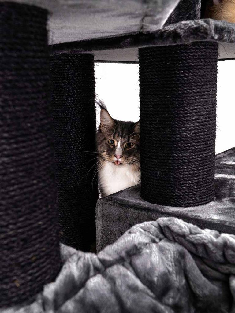 Klösträd Alley är ett perfekt klösträd för dig med flera katter som du vill skämma bort. Utrymmet är stort och dina katter får plats för att leka, klösa och klättra hur mycket dom vill.