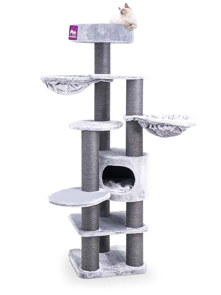 Både högt och rymligt för dina katter med en stark bottenplatta som håller klösträdet stabilt.