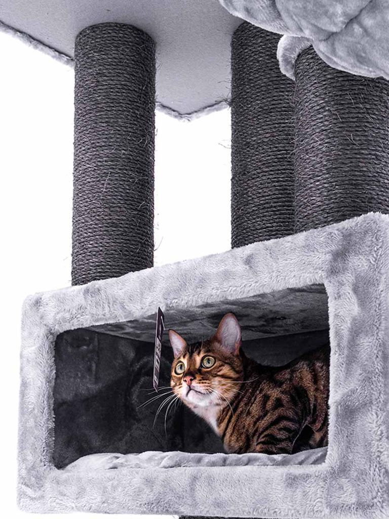 Bottenplattan är tjock och håller klösträdet stadigt när dina katter leker för fullt utan att vingla till. Passar även alla katter från stora till små då det finns rymliga utrymmen för både mindre och större katter.