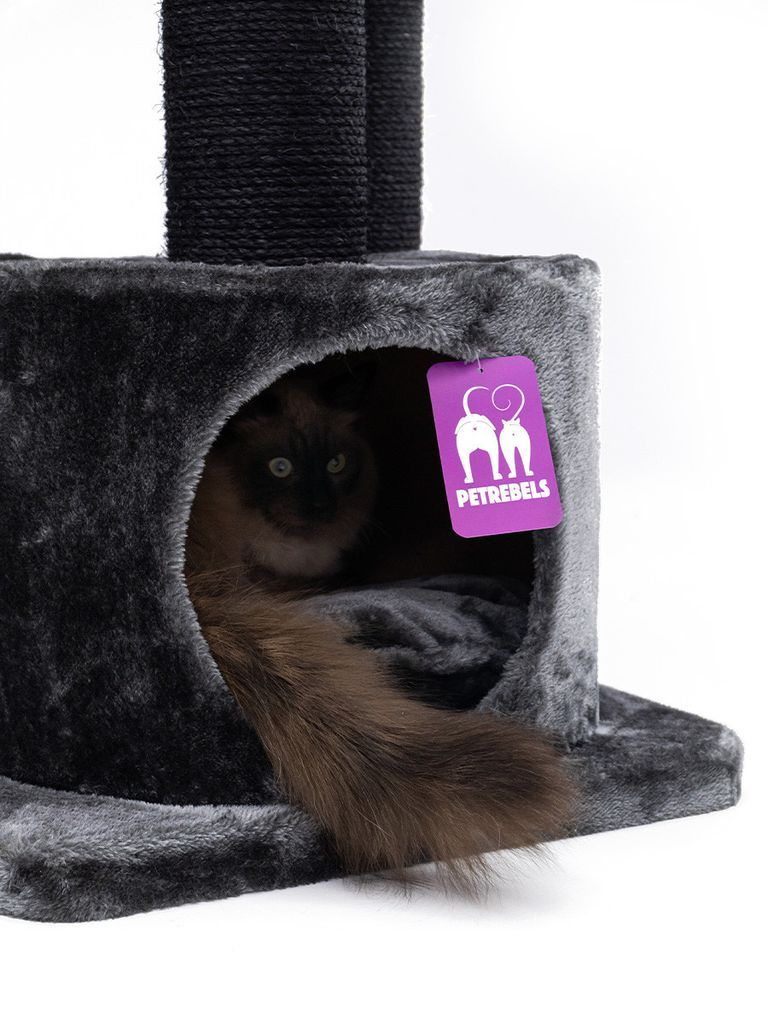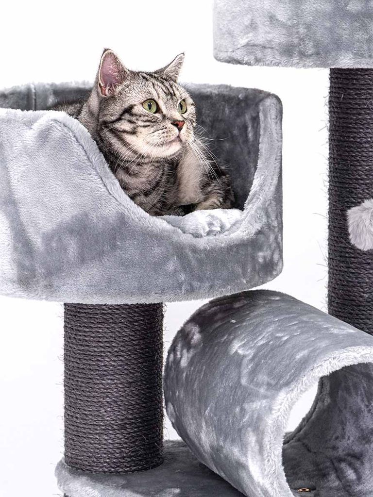 Detta klösträd är fullt utrustad med allt som din katt behöver, en mysig och bekväm viloplats med mjukt material i plysch, klöspelare, och tillgänglig för klättring.