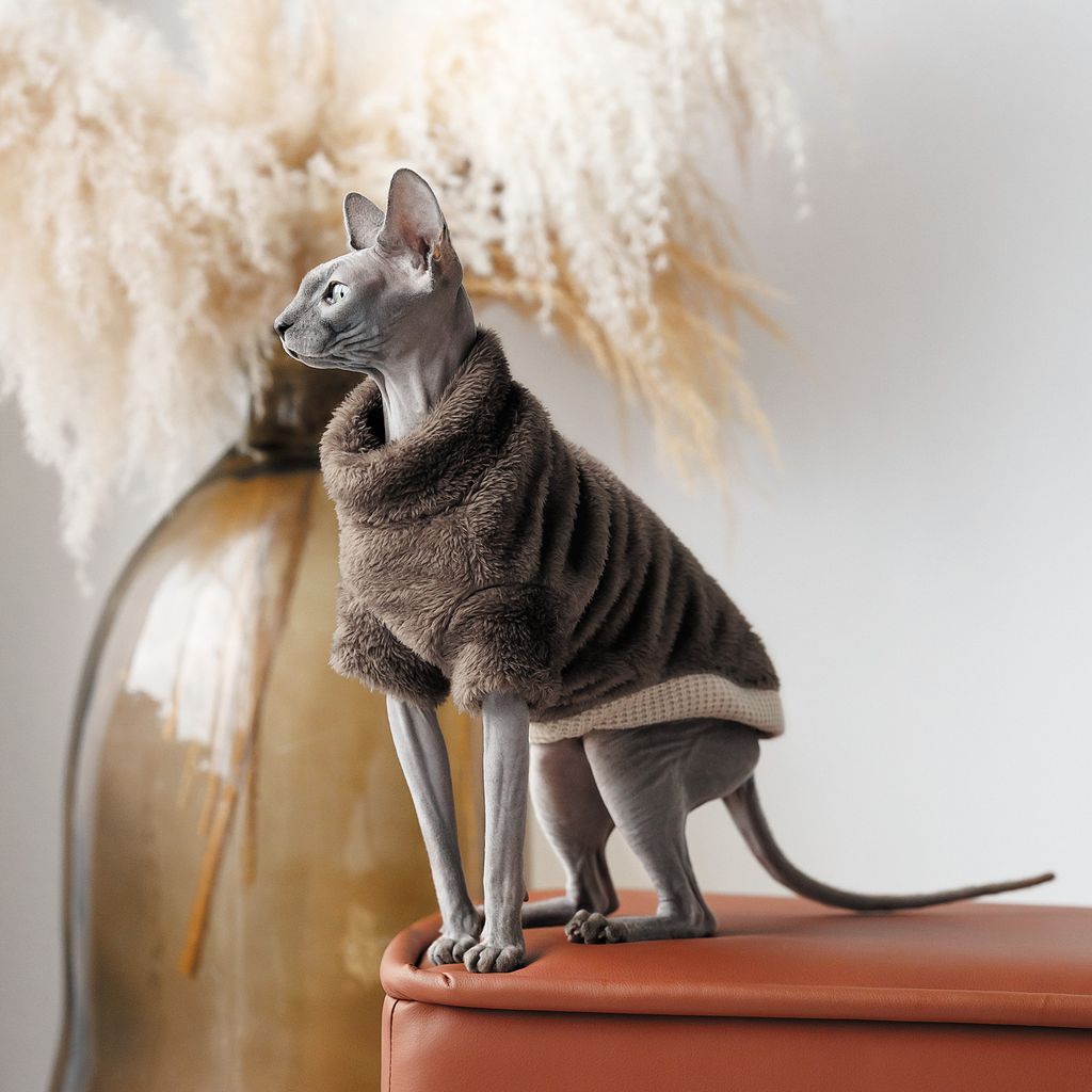 Tröjan är mjuk och fluffig, perfekt för en nakenkatt under kalla väder.