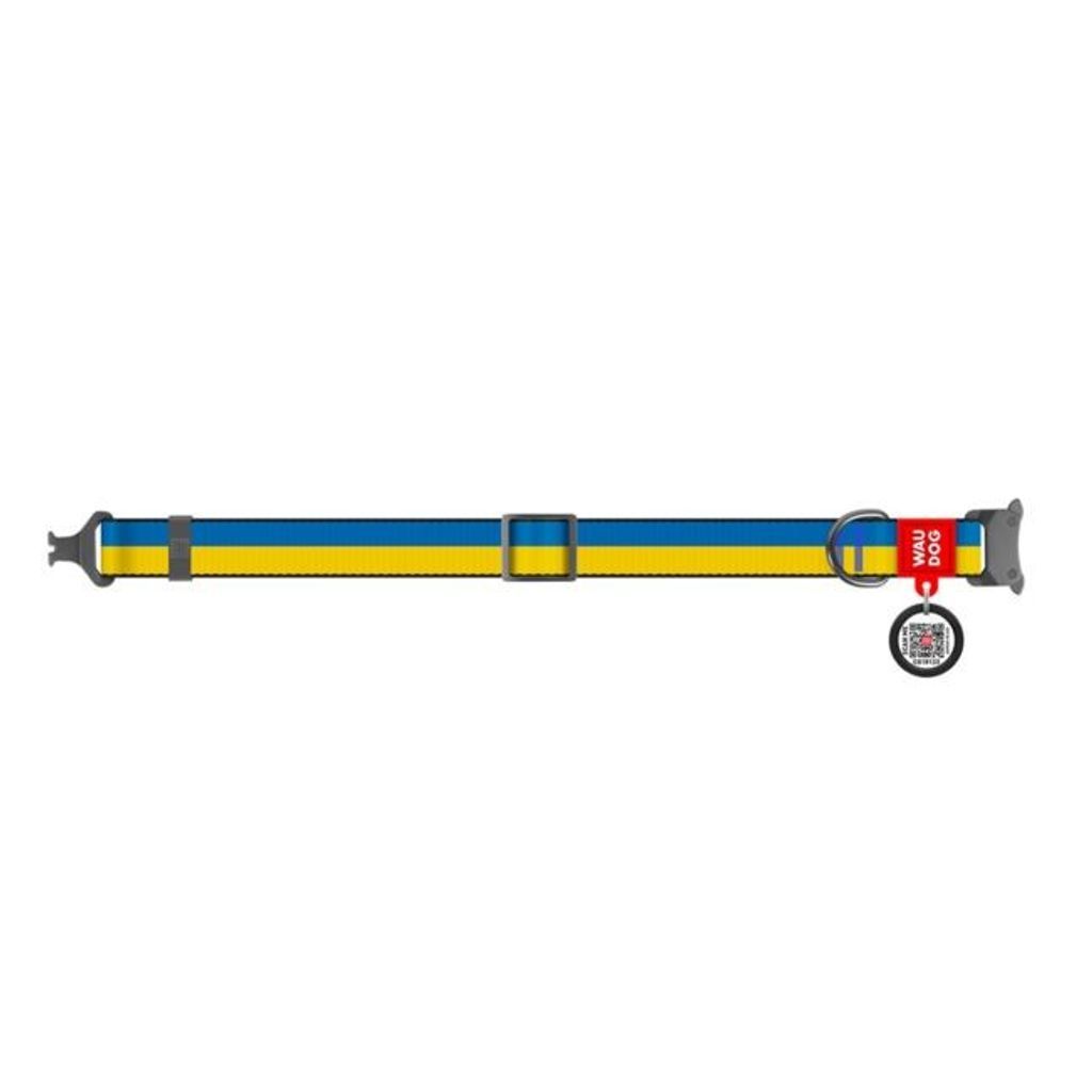Hundhalsband i gult och blått med Smart ID bricka. Då WAUDOG är ett Ukrainskt företag har de lanserat en serie som kallas Colors of Freedom, i vilken denna ingår. Färgerna representerar den Ukrainska flaggan och ger människor möjlighet att visa sitt stöd för det Ukrainska folket utanför landets gränser.