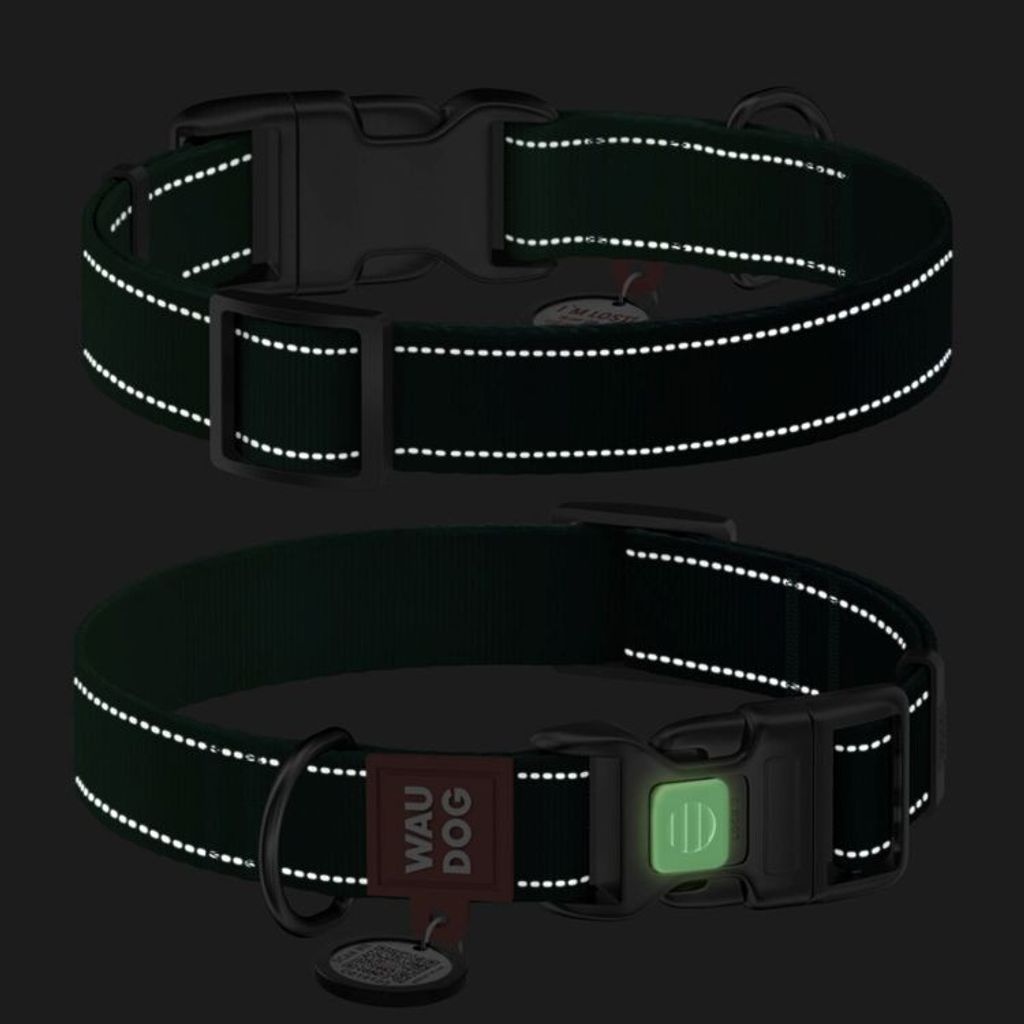 Beskrivning av WAUDOG Mono Hundhalsband Reflex med Smart-ID bricka Grön