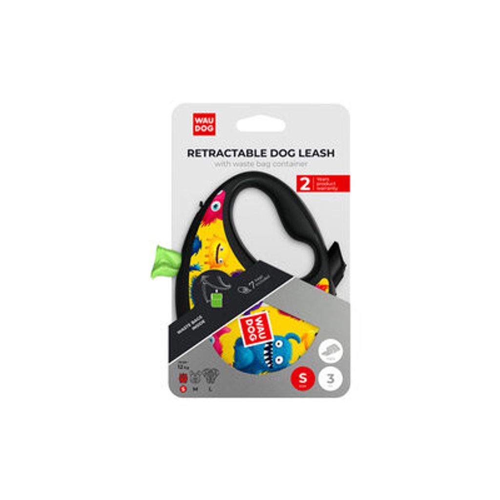 Beskrivning av WAUDOG R-Leash Rullkoppel med Bajspåsehållare Furry Monsters