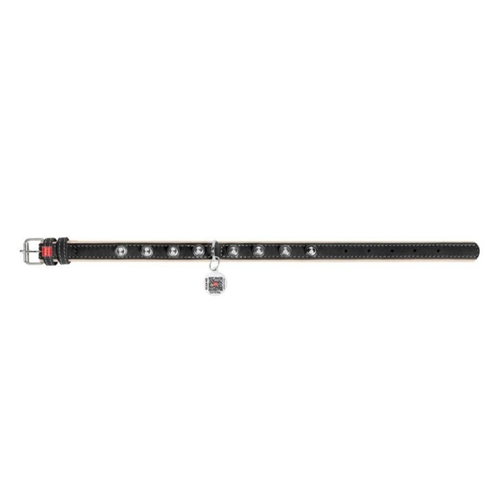 WAUDOG Soft Läderhalsband med Nitar Smart-ID Bricka, Svart
